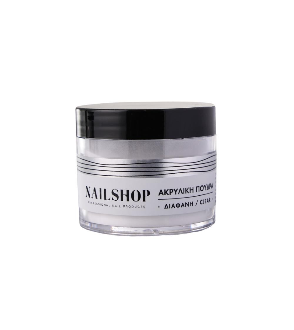 Διάφανη Ακρυλική Σκόνη. Η ακρυλική σκόνη νυχιών (πολυμερές) και το ακρυλικό υγρό liquid (μονομερές) είναι τα δύο συστατικά του συστήματος τωων ακρυλικών τεχνητών νυχιών. Το ακρυλικό μπορεί να χρησιμοποιηθεί σε φυσικά νύχια, με τιπς ή με φόρμες.