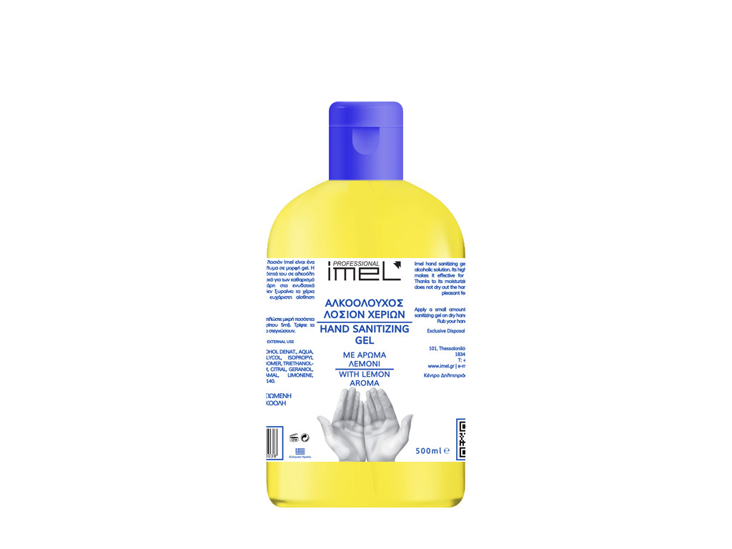 Η αλκοολούχος λοσιόν Imel είναι ένα αλκοολούχο διάλυμα σε μορφή gel.Η υψηλή περιεκτικότητα του σε αλκοόλη (70%) το καθιστά δραστικο για τον καθαρισμό των χεριών .Χάρη στα ενυδατικά συστατικά του δεν ξηραίνει τα χέρια και αφήνει μια ευχάριστη αίσθηση απαλότητας